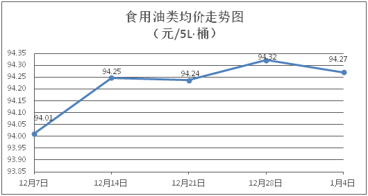 食用油類商品價格基本平穩(wěn)。所監(jiān)測的食用油(5L裝)商品價格波動情況為1漲2跌6平,綜合零售均價為每桶94.27元,環(huán)比下降0.05%。其中:魯花花生油、金龍魚調(diào)和油零售均價分別為每桶155.75元、70.83元,環(huán)比分別下降0.43%、上漲0.50%。