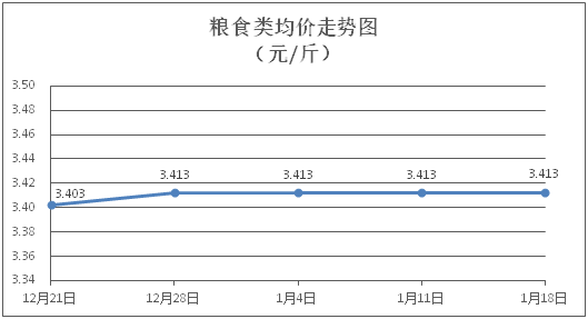 糧食類商品價格維持穩(wěn)定。所監(jiān)測的4種糧食類商品價格均持平,綜合零售均價為每斤3.413元。其中:絲苗米、面粉零售均價分別為每斤3.54元、3.38元,環(huán)比均持平。