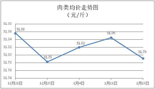 肉類商品價格微幅下降。所監(jiān)測的8種肉類商品價格均下跌,綜合零售均價為每斤31.79元,環(huán)比下降0.17%。其中:排骨、精瘦肉、牛肉、帶骨羊肉零售均價分別為每斤29.28元、18.00元、46.79元、41.57元,環(huán)比分別下降0.34%、下降0.33%、下降0.02%、下降0.07%。
