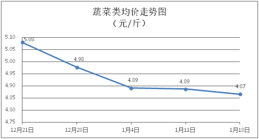據(jù)本市21家農(nóng)貿(mào)市場監(jiān)測數(shù)據(jù)顯示,上周(1月12日至1月18日)市場上各類“菜籃子”商品供應充足,所監(jiān)測的7大類“菜籃子”商品價格環(huán)比總體表現(xiàn)為2漲4跌1平。其中:糧油類、水產(chǎn)類商品價格穩(wěn)中有漲,肉禽蛋類、蔬果類商品價格總體略降。
