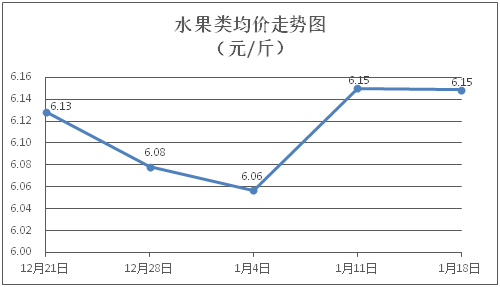 水果類商品價格窄幅盤整。所監(jiān)測的水果商品價格波動情況為1漲1跌4平,綜合零售均價為每斤6.15元,環(huán)比下降0.03%。其中橙子、蘋果、香蕉零售均價分別為每斤5.65元、7.90元、2.78元,環(huán)比分別下降0.70%、持平、上漲1.09%。