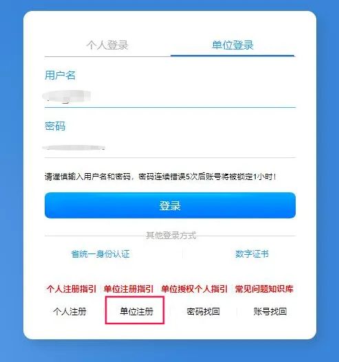單位賬號注冊,必須使用本人真實有效的信息進行注冊,否則將無法進行實名認證,影響業(yè)務辦理。