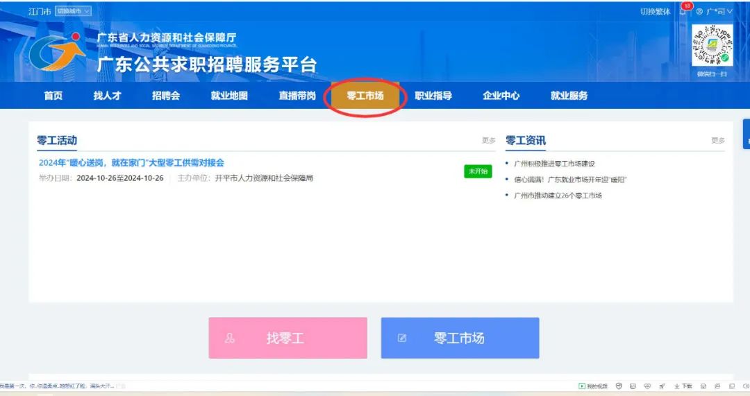 廣東公共求職招聘服務平臺→企業(yè)中心→零工市場→零工崗位