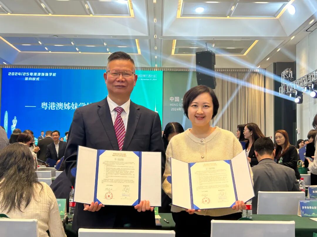 11月21日下午,“2024/25粵港澳姊妹學(xué)校簽約儀式”在珠海橫琴天沐酒店會議中心圓滿舉行。在粵港澳各界教育同仁的見證下,來自粵港澳三地的近182所中小學(xué)校、幼兒園成功締結(jié)為91對“姊妹學(xué)?!?。恩平市年樂學(xué)校與香港嘉諾撒圣家學(xué)校成功簽約粵港澳姊妹學(xué)校。