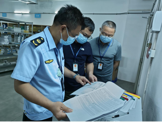 執(zhí)法人員在對(duì)檢查對(duì)麻醉藥品和精神藥品進(jìn)行檢查